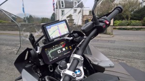 R1250 GS Adventure Dashboard with Motorrad Navigator November 8, 2019November 8, 2019 alistairl View of R1250GS Adventure TFT Screen, Satnav and Throttle side of handlebar. Motorcycle has keyless ignition.